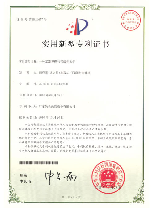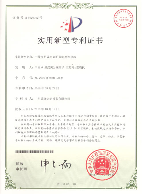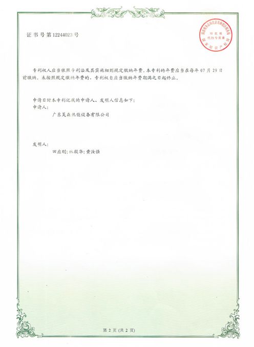 适用新型专利证书