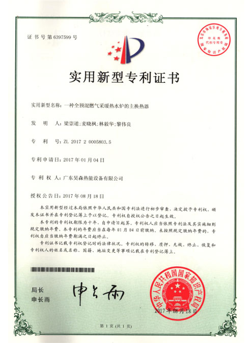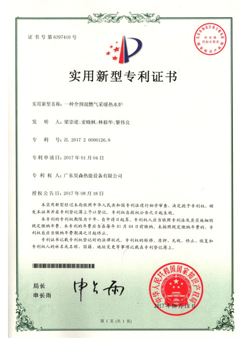 适用新型专利证书
